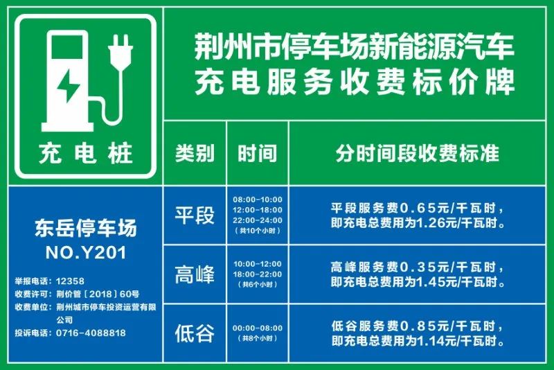 荆州城区停车场汽车充电桩开始试运营,来看收费标准