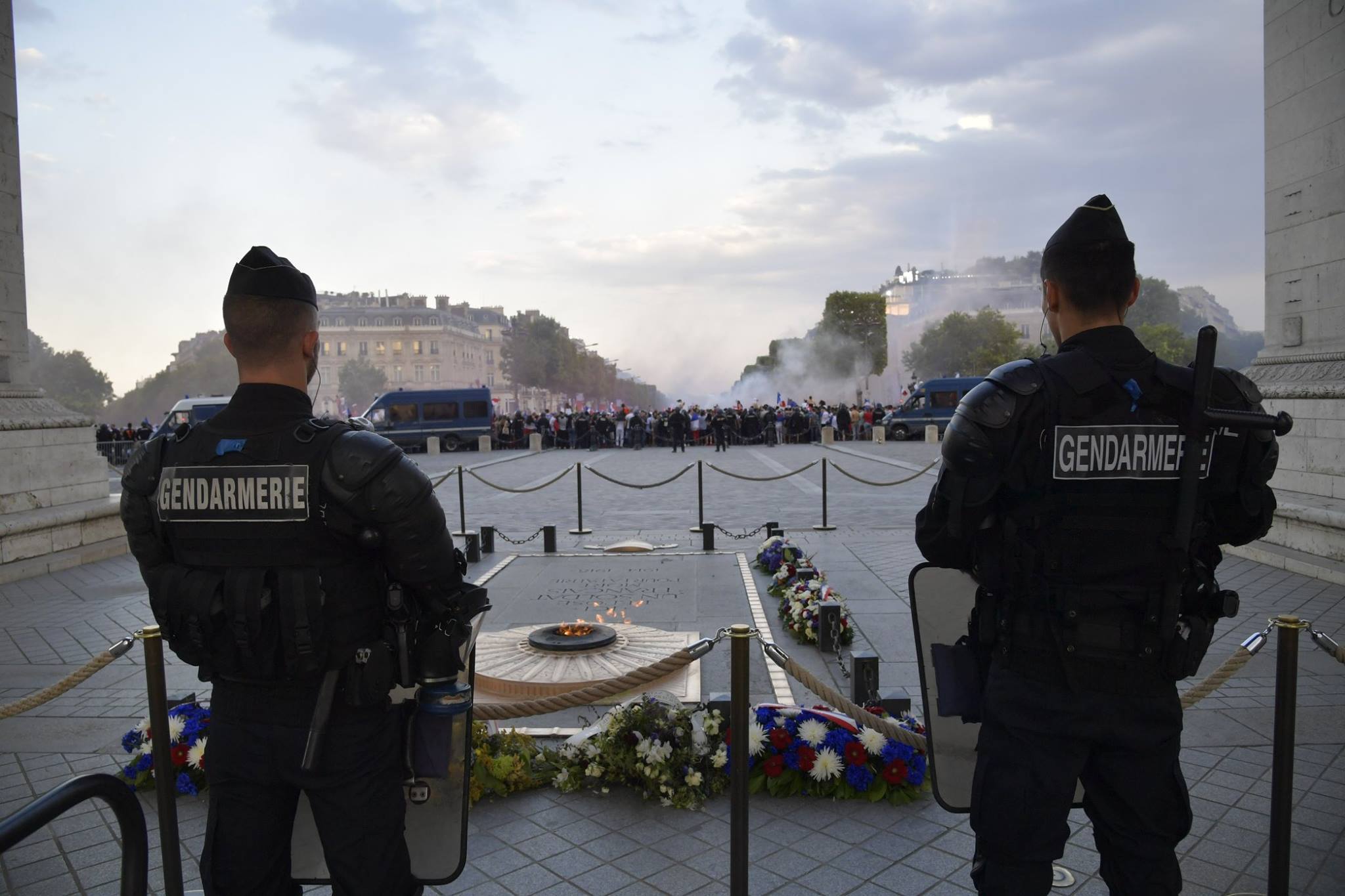 法国国家宪兵护卫返回巴黎的法国足球队和