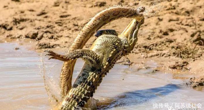 鳄鱼袭击蝰蛇,只要咬住蛇头,毒蛇再毒都