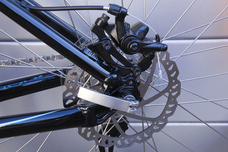 自行车刹车。自行车的前轮显示自行车刹车左和右中心。这些都是由处理未见通过一个悬臂电缆上部中心。