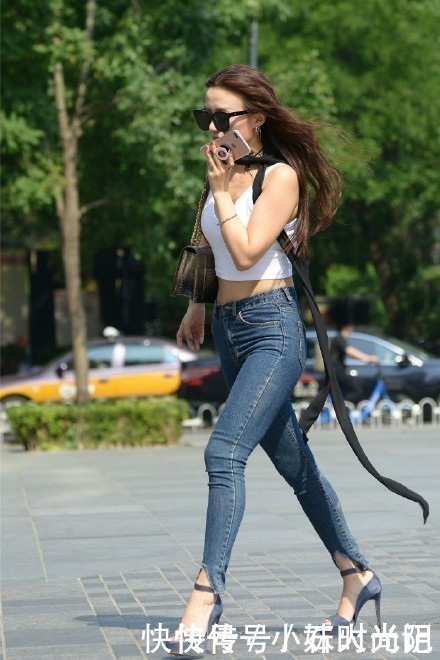 个性的姐姐,脖子上系腰带,是嫌脖子粗吗