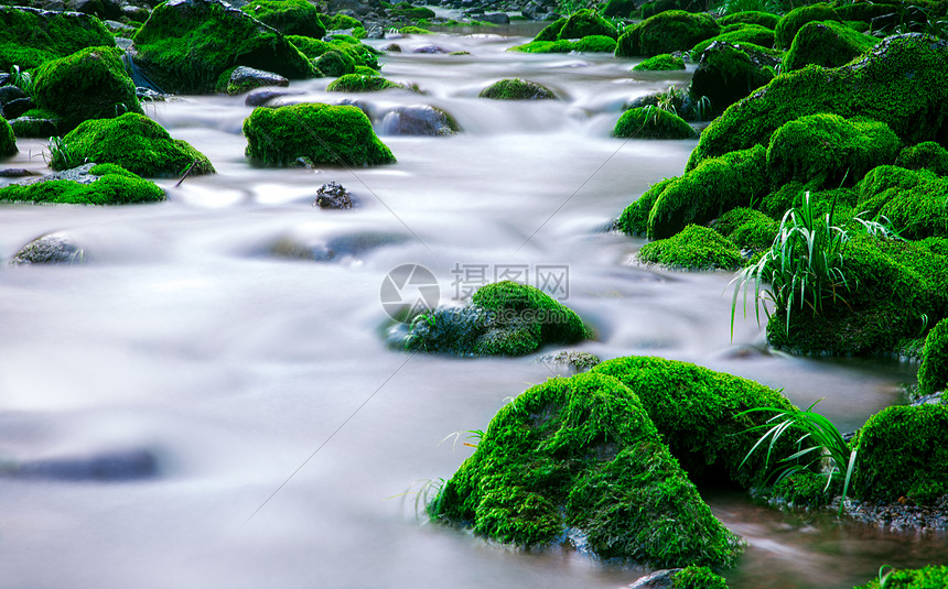 像牛奶一样丝滑的溪水青苔图片素材_免费