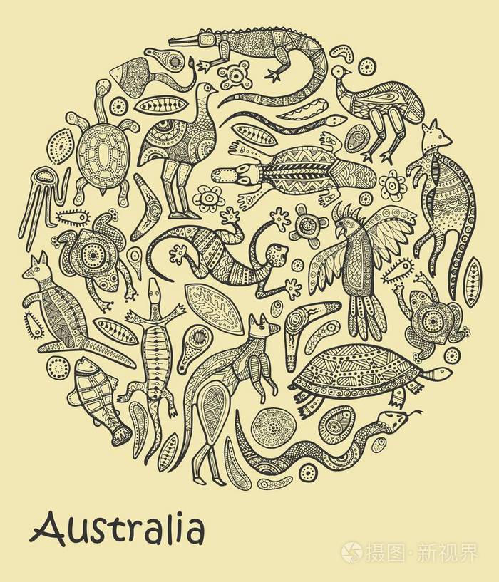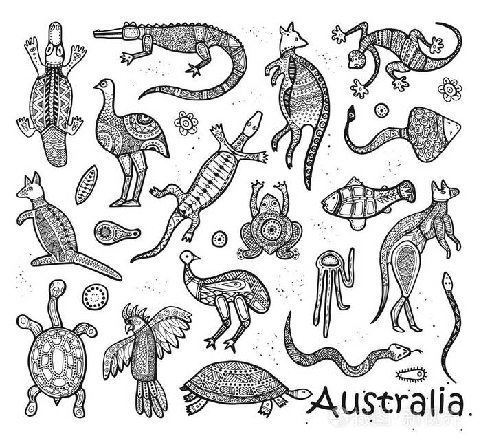 动物画澳大利亚原住民风格