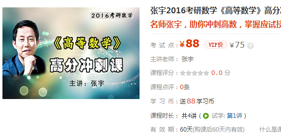 张宇 2016考研数学 强化班 全7讲 视频教程