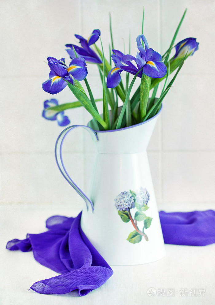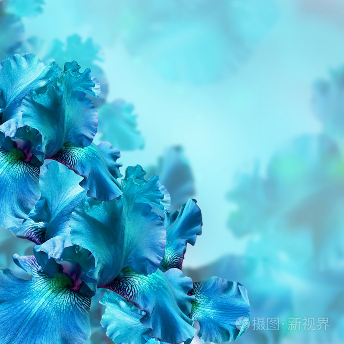 蓝色鸢尾花白色背景上分离。节日贺卡