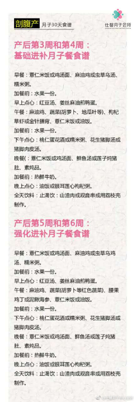 产妇食谱大全】月子餐30天食谱,剖腹产后