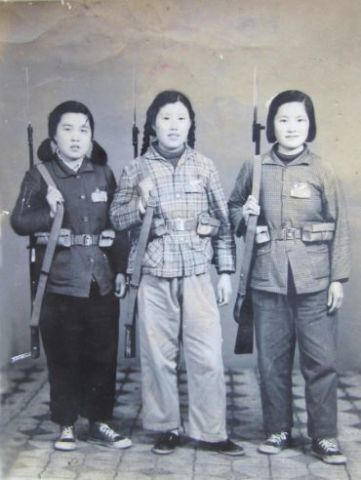 文革经典“保卫祖国”,刺刀亮闪闪爱红装的女民兵,东方红摄影_老照片_沈阳连藏阁【中国收藏热线】