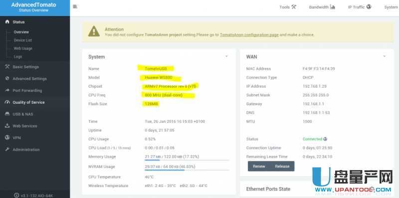 华为WS880刷Tomato固件3.4-138官方版