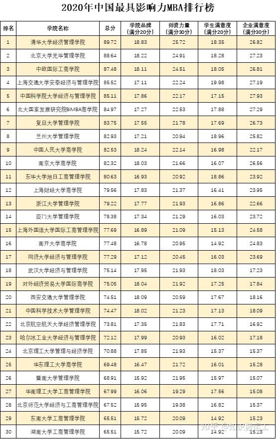 2020年中国最具影响力MBA排行榜