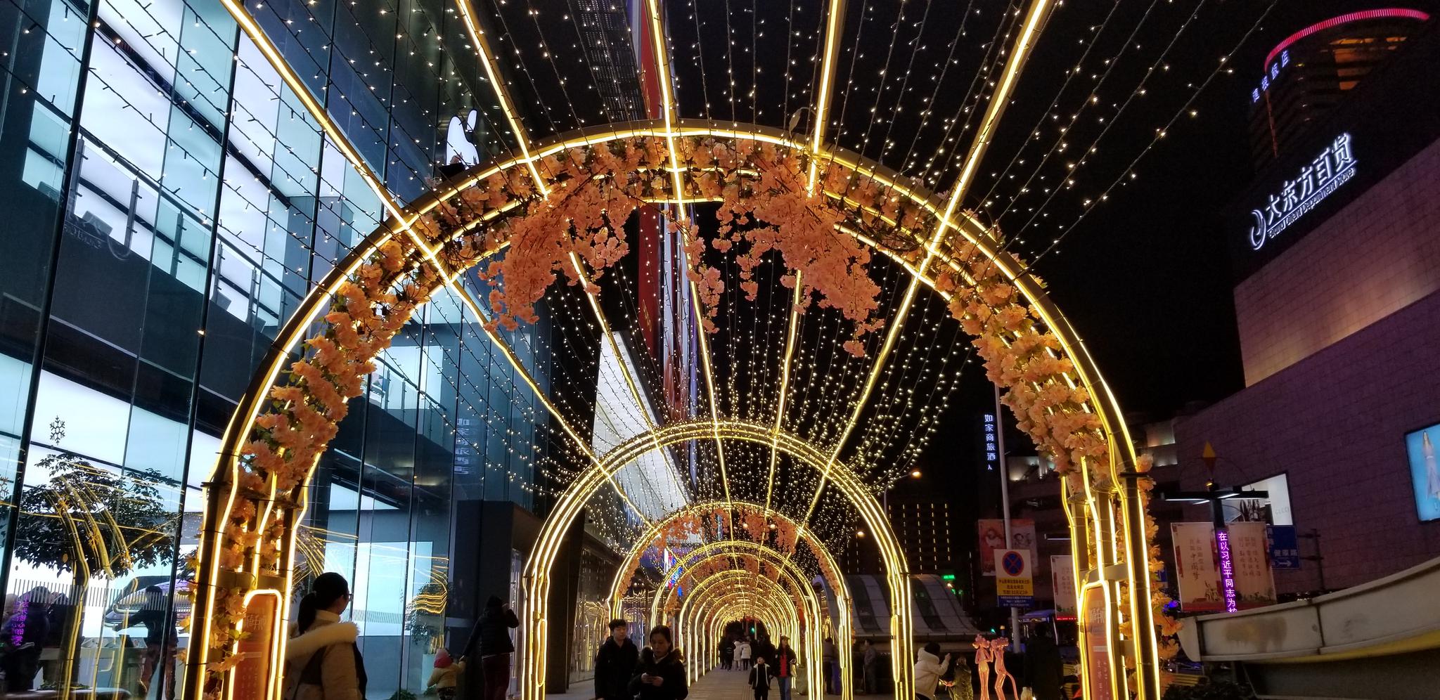 灯光隧道中国鼓,小猪佩奇过大年,无锡中山路年味浓厚