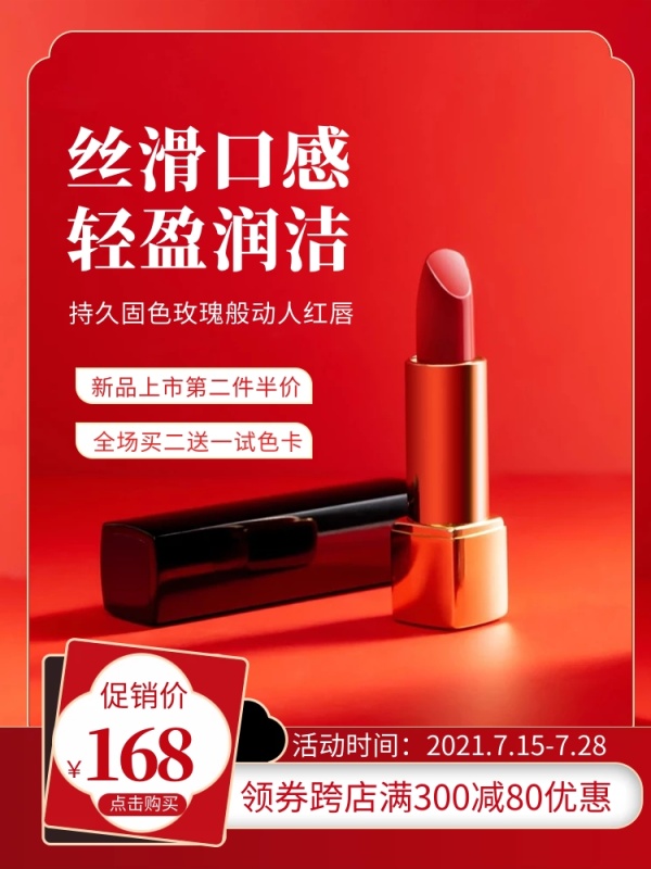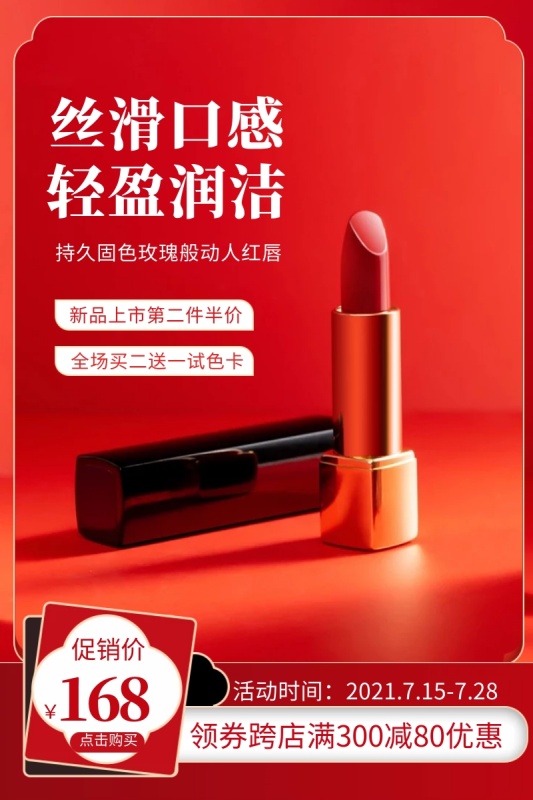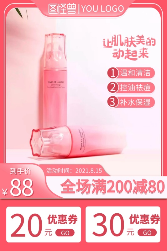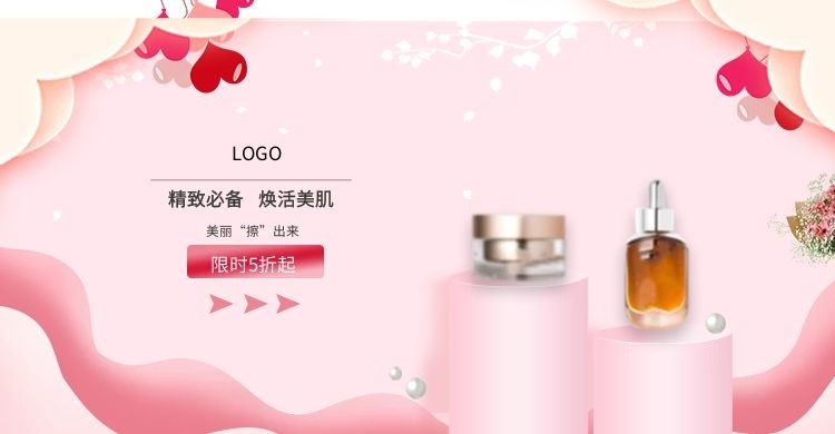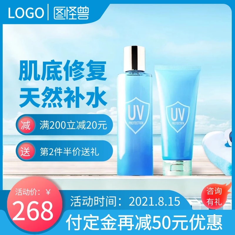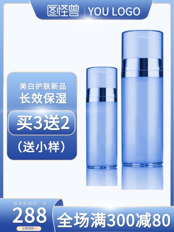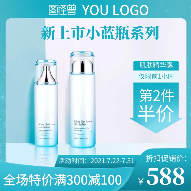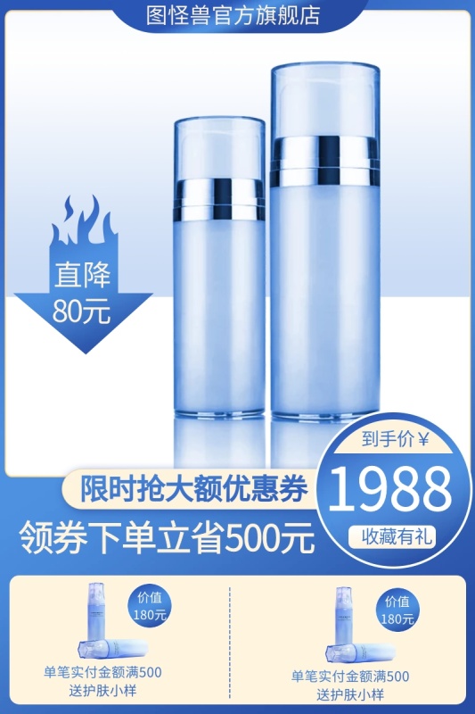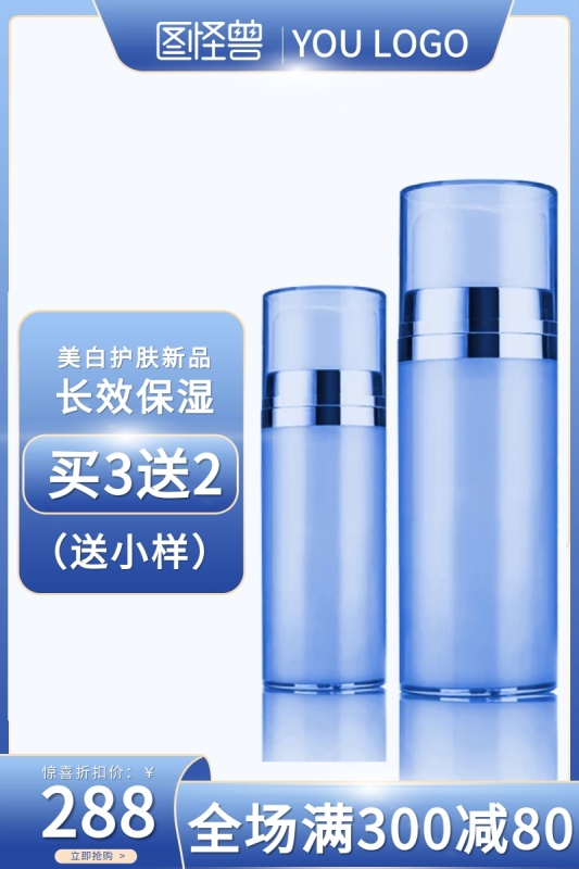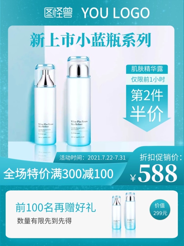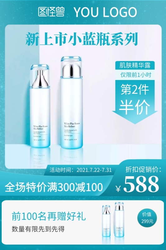 电商蓝色天猫狂暑季化妆品促销全屏海报