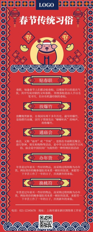 春节传统习俗红色长图