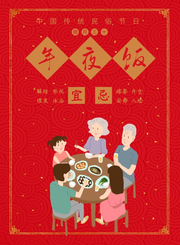 春节传统习俗黄历腊月三十印刷海报