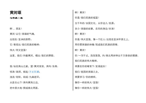 七年级下册黄河颂原文带拼音