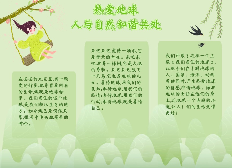 绿色小清晰热爱地球人与自然和谐相处手抄报