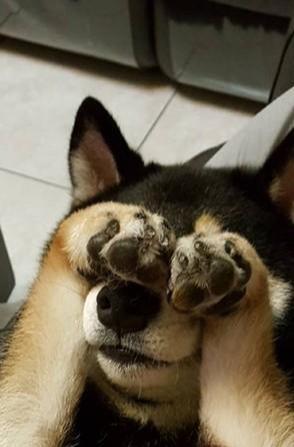 狗狗赌气躲厕所,还露出一截爪子暗示:跟我