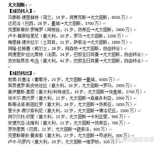 资源整合!尤文高层有大智慧 卖冗员回收1.5