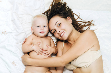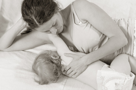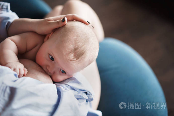 年轻的母亲的女人母乳喂养她的孩子女婴婴儿