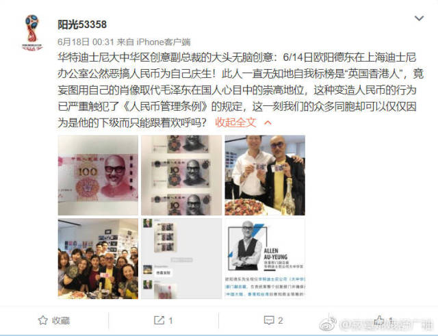 关注 | 迪士尼高管恶搞人民币为自己庆生!该
