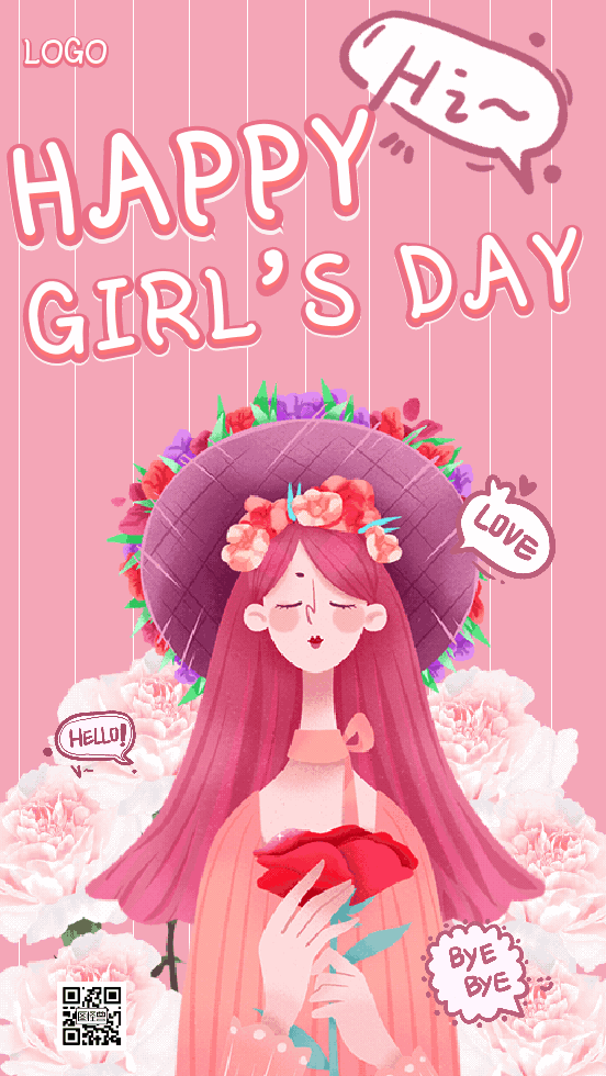 康乃馨女神卡通可爱女神节女生节GIF海报