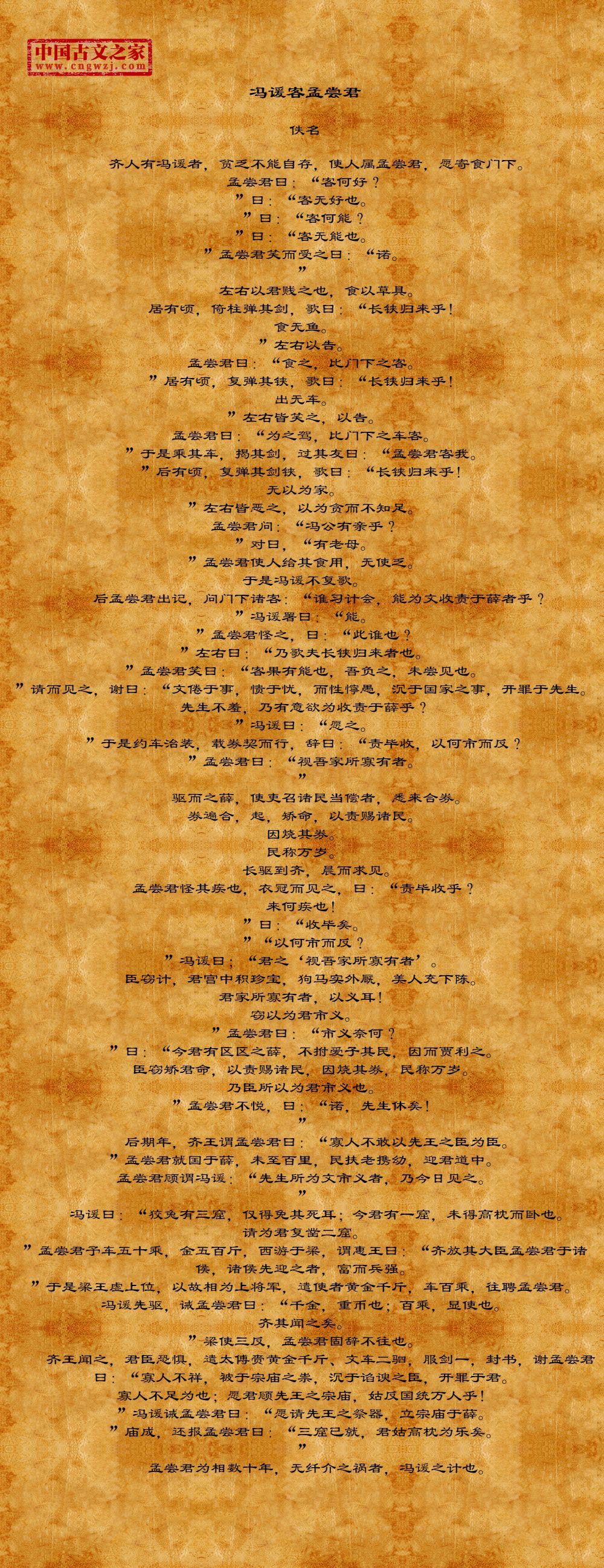 冯谖客孟尝君图片大全,古诗冯谖客孟尝君
