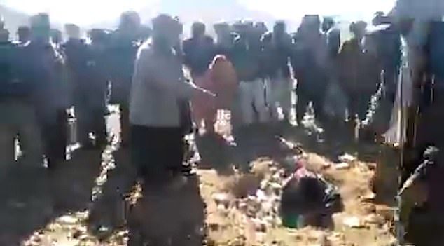 阿富汗一妇女蜷缩在土坑中,被塔利班暴徒