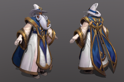 手绘魔幻游戏魔法师 白袍巫师 白胡子老人