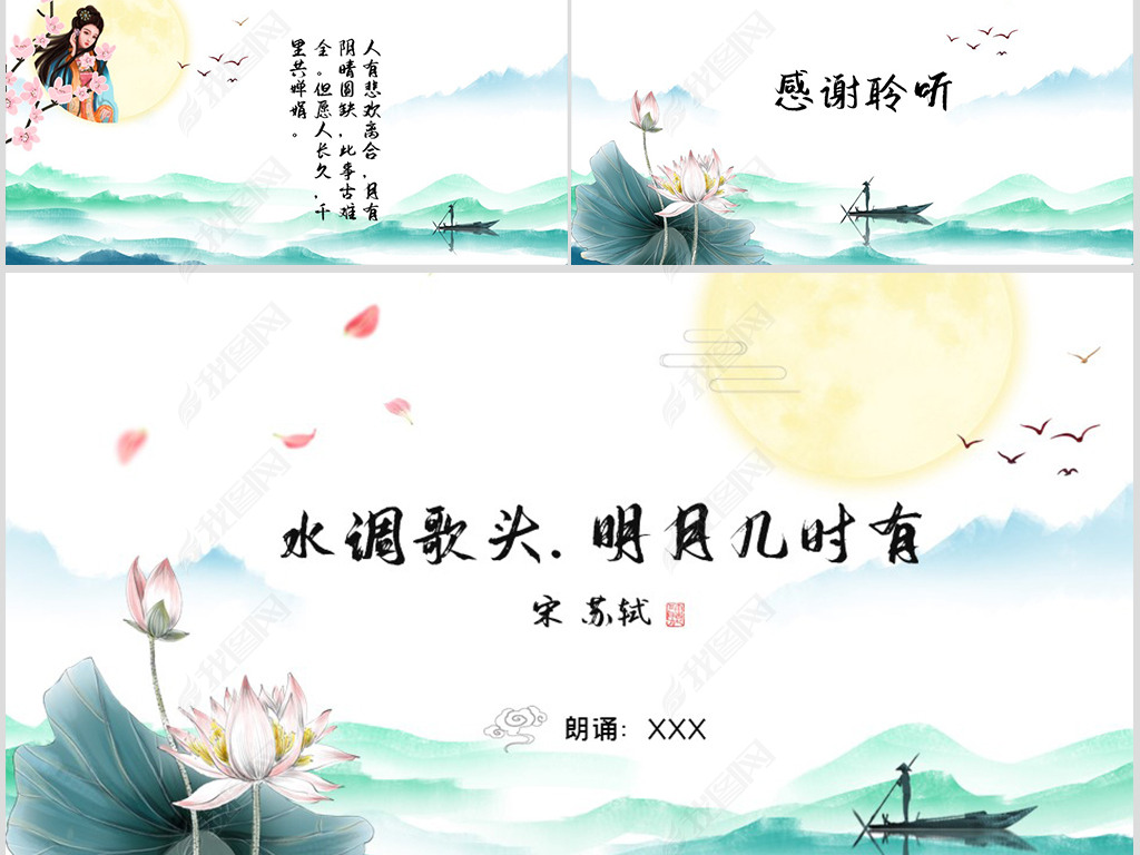 水调歌头明月几时有古诗朗诵动态PPT模板