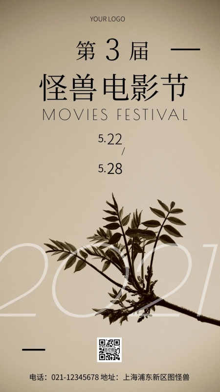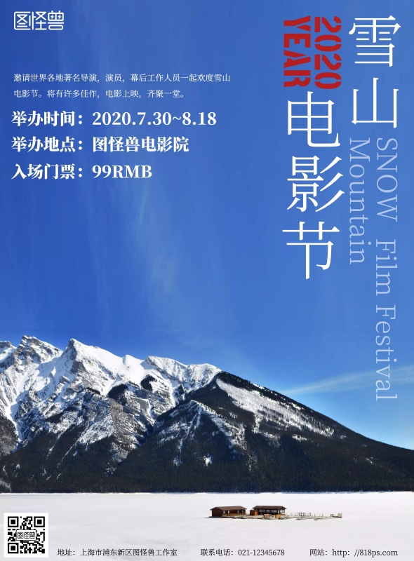 雪山电影节日式简约风电影节竖版海报