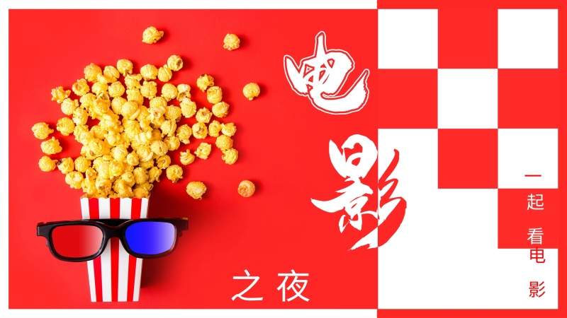 电影之夜电影院爆米花红蓝3d眼镜