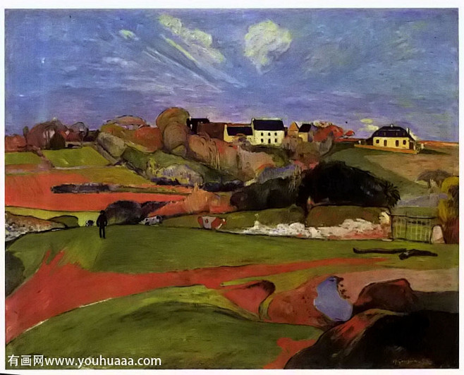 后印象主义:法国 保罗·高更 普尔杜风景 - Landscape at Le Pouldu