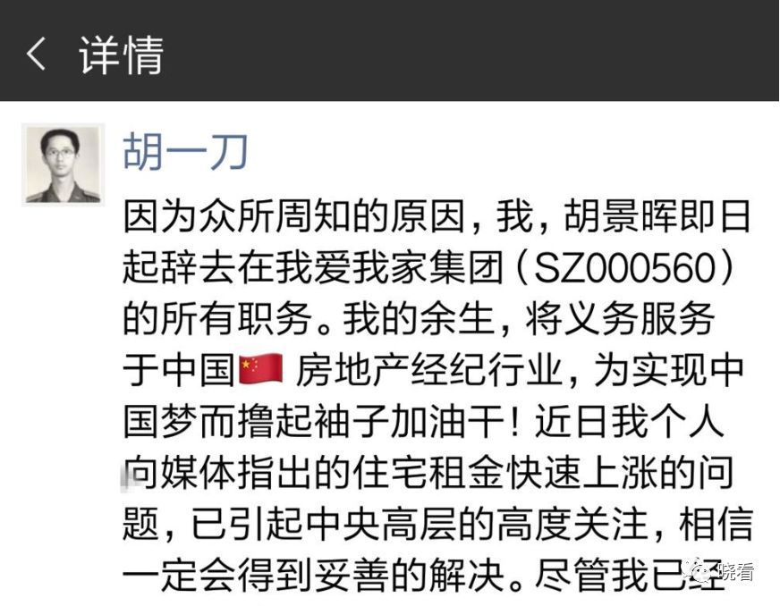 我爱我家胡景晖辞职 曾炮轰长租公寓比P2P