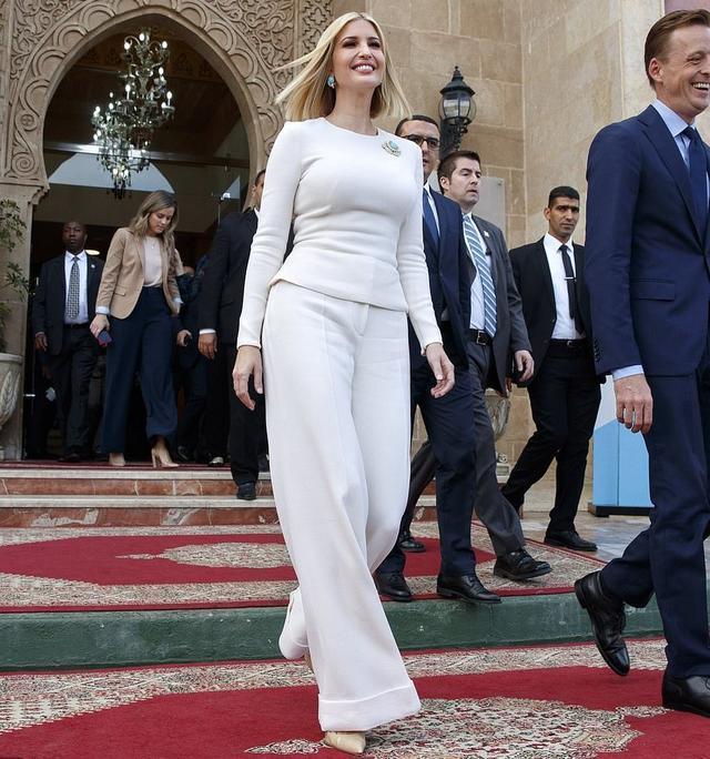 伊万卡一袭紧身裙挖个洞与克林顿握手,