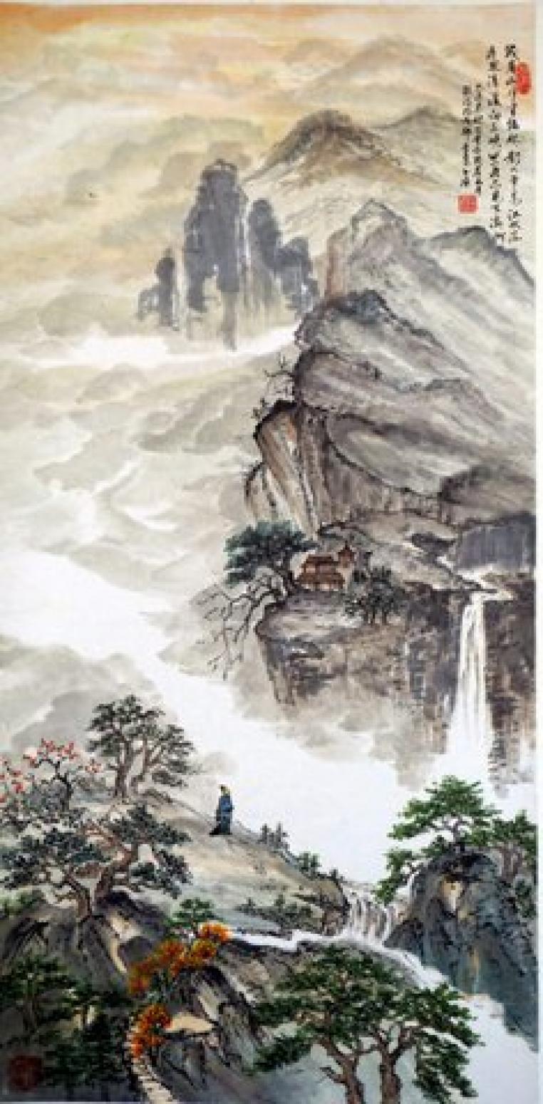李奎国画作品《峨眉山月半轮秋 作者李奎》