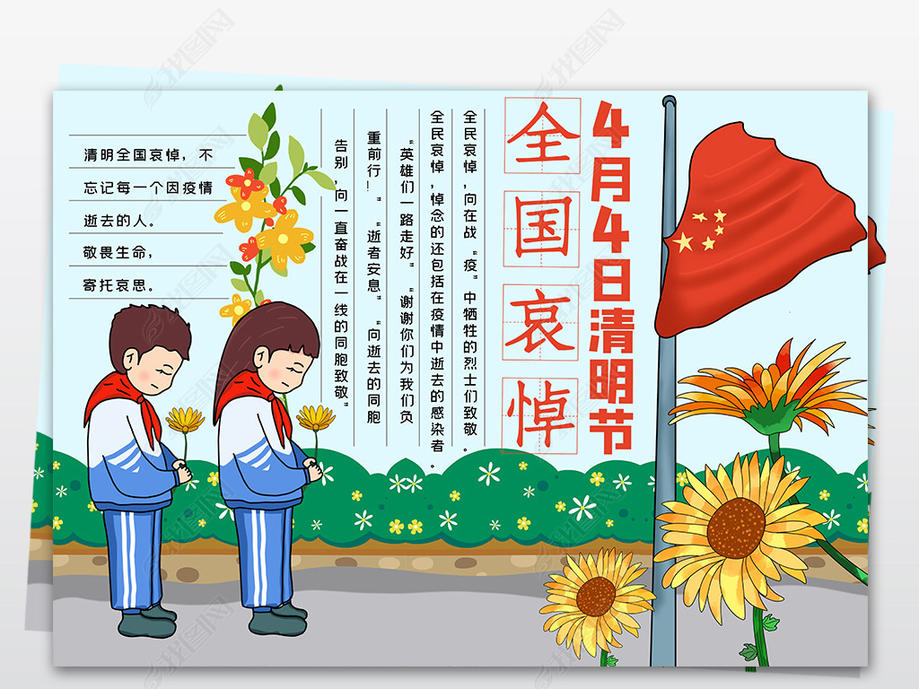 4月4日清明节全国哀悼日手抄报向战疫英雄