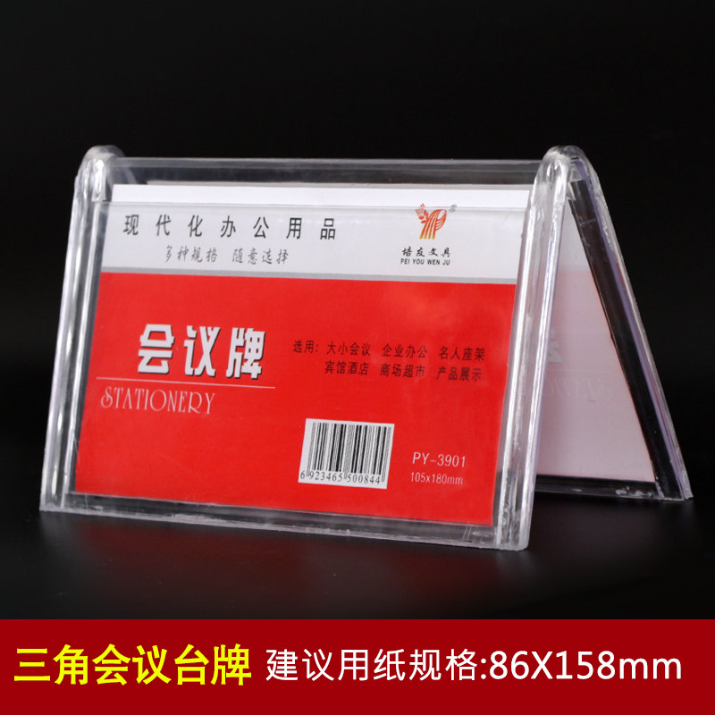 供应塑料三角桌签三角桌签现代化办公用品高透明度塑料会议牌3901】价格_