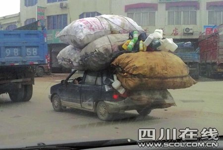 奥拓顶棚拉旧塑料瓶收荒匠开车上班?
