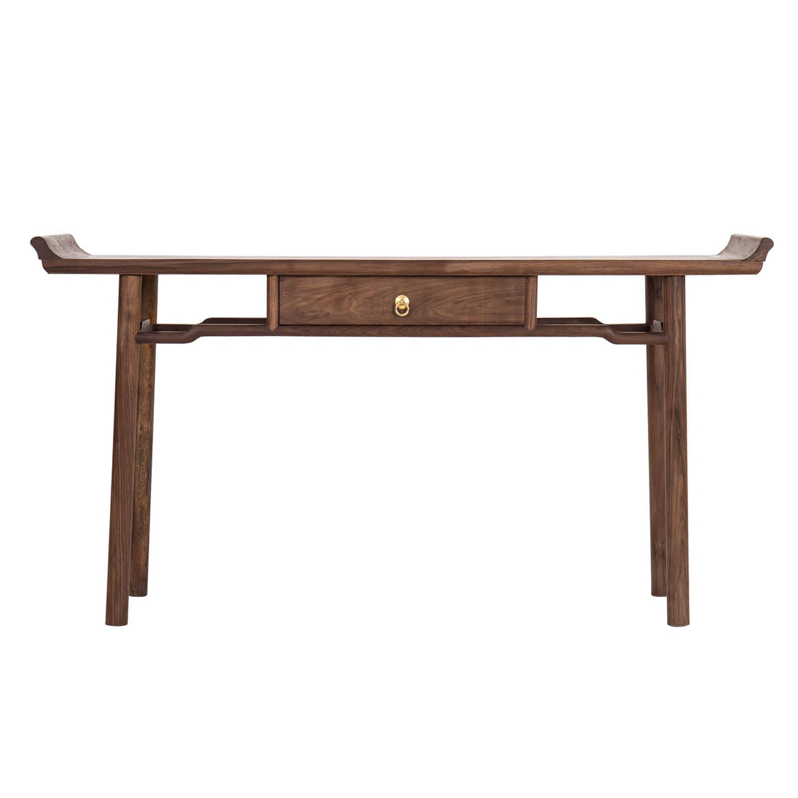 中式实木翘头条案黑胡桃木门厅玄关台装饰