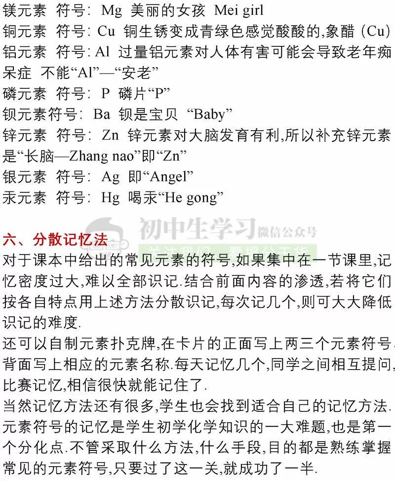 6种初中化学元素快速记忆法,学会1种就能