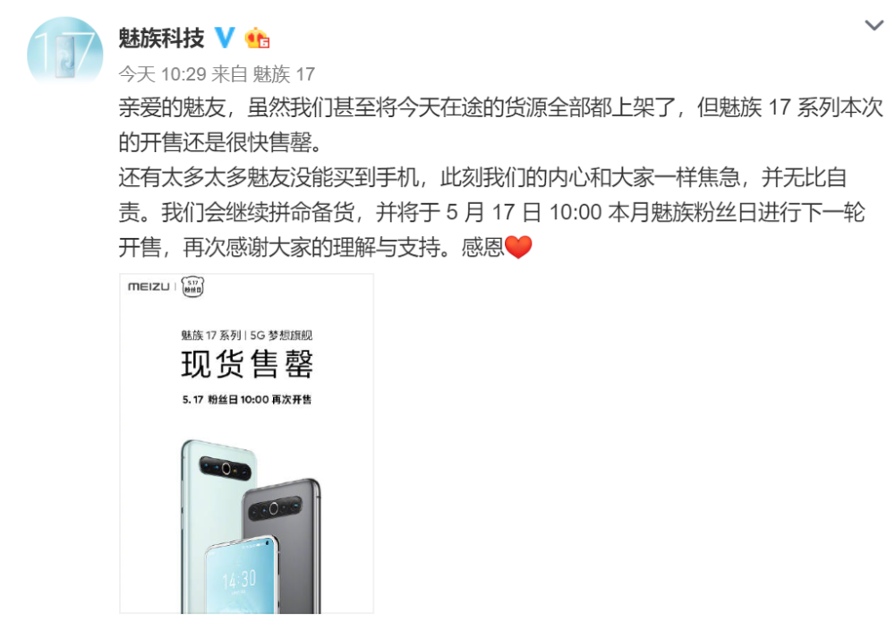 强势归来吗?魅族17系列两次发售瞬间售罄