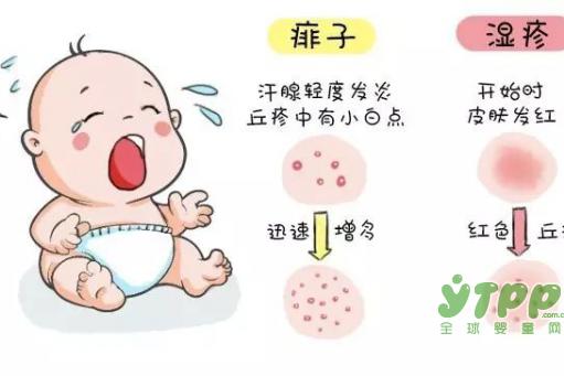 湿疹、急疹、痱子、荨麻疹、水痘、婴儿痤疮、过敏等婴儿疾病区别