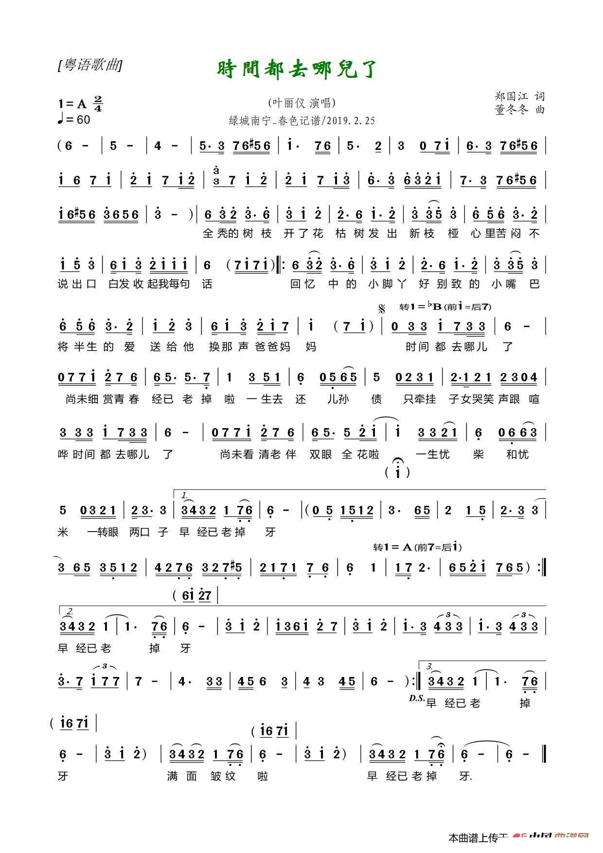 时间都去哪儿了 王铮亮 歌谱简谱网