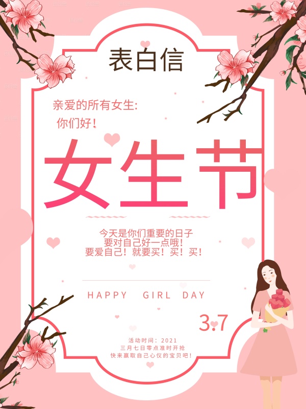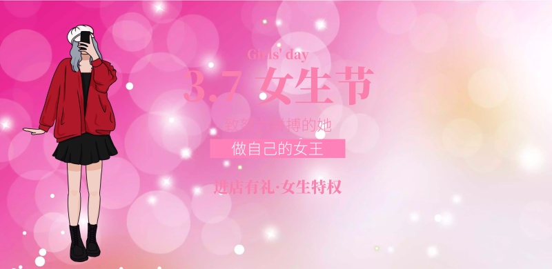 女生节靓丽女孩礼物3月7日免费下载_插画