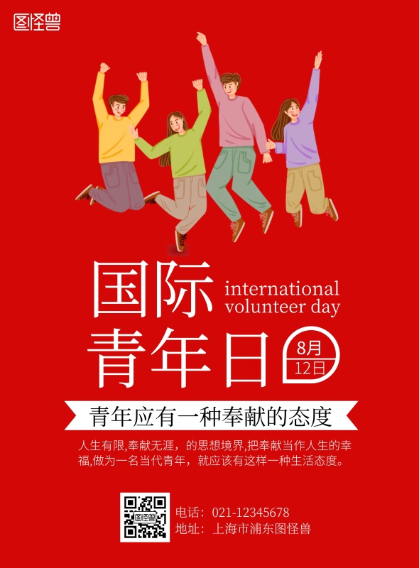 国际青年日是一种生活态度红白宣传海报
