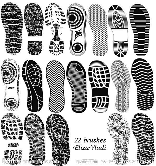 高清鞋印笔刷纹路图案花纹鞋底鞋波浪