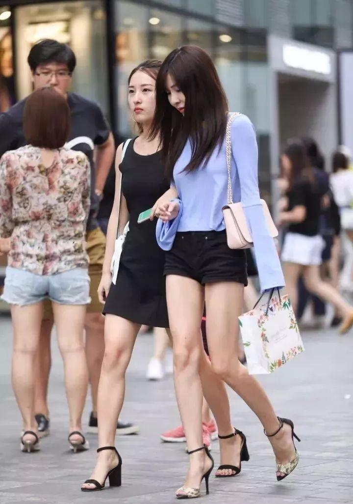 街拍美女:时尚姐妹花穿超短裤出街秀出大白腿,性感美腿很晃眼