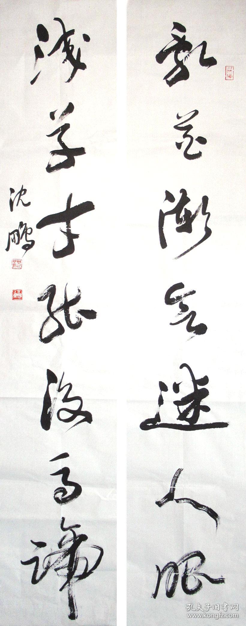 (乱花渐欲迷人眼 浅草才能没马蹄) 沈鹏 草书七言联 手写书法对联