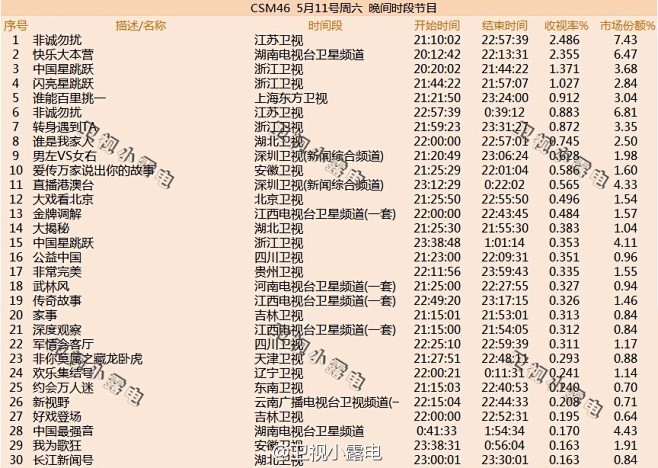 吧 CSM城市网数据 来自卫视小露电 - 微博