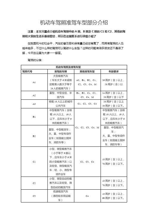 机动车驾驶证准驾车型-驾照准驾车型对照表图