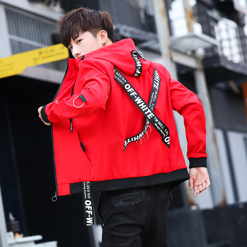 黑色花外套男装非主流夹克秋冬薄款衣裳黑